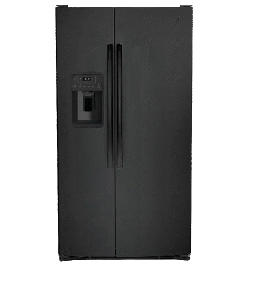 GE™ 25.3 Cu. Ft. Side-by-Side Refrigerator with External Ice & Water Dispenser - High Gloss Black.