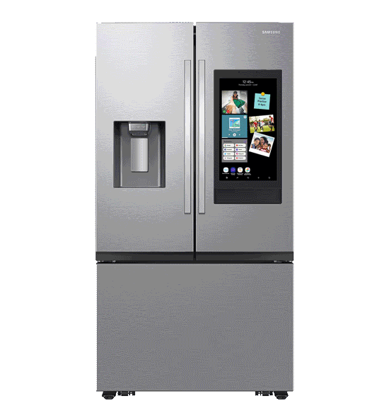 Samsung's Family Hub french door refrigerator keeps you connected to your family and home. Share pictures, stream music and videos, access recipes, control your smart devices and Alexa all from the fridge.1